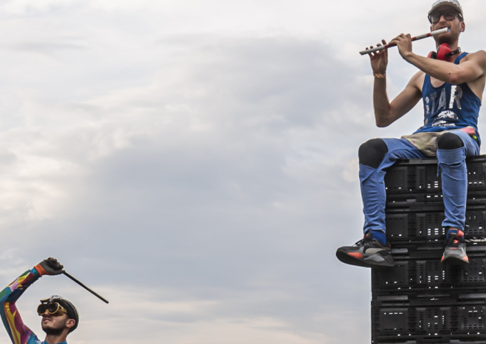 Compost Collaps c’est un percussionniste du futur et sa CC-220, un instrument percu-composteur fait-maison 100 % récup, un tas de déchets qui chauffe des dancefloors, alimenté par une très grande motivation : l’envie qu’existent et perdurent la musique sans les high-tech, les Sound Systems sans pétrole. Dr Gagouz rajoute plein de mélodies et d’harmonies à base de cornemuses, flûtes, trompettes, des trucs indescriptibles avec des matériaux détournés et beaucoup de plastique, qu’il faut voir et entendre. Pour des lendemains qui chantent et qui tapent, pour que partout, toujours, la fête continue !
