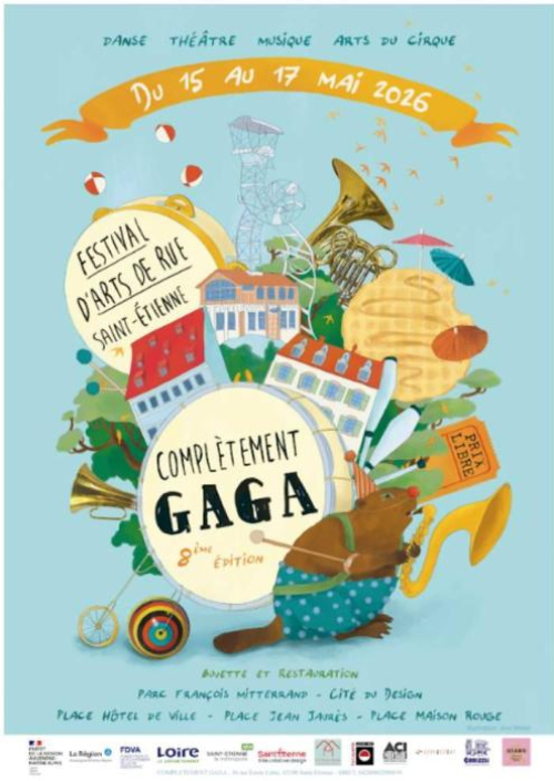 Le festival des arts de rue Complètement Gaga revient du 15 au 17 mai 2026 pour une 8ème édition à Saint Etienne. 3 jours de spectacles, cirque, théâtre, musique, danse et bonne humeur au coeur de la ville.