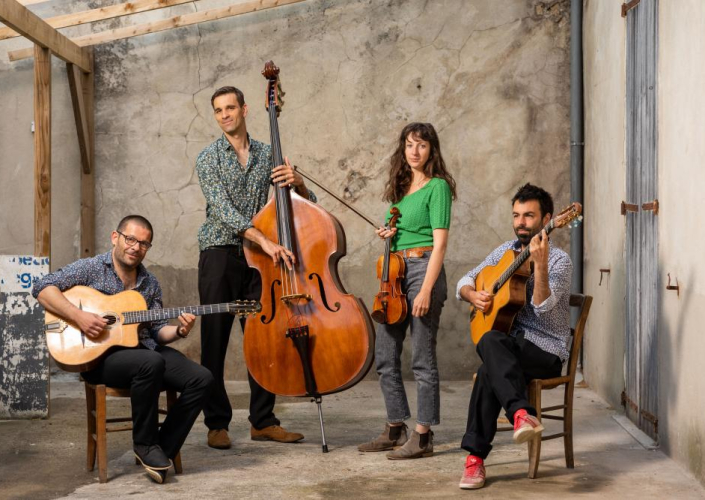 Ce quartet à cordes drômois, reprend la recette authentique du swing « à la française » en y mêlant leurs influences et y ajoutant une modernité par leurs compositions et leurs improvisations.