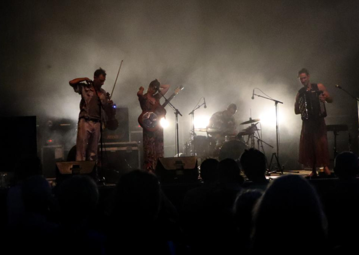 Créé durant l’hiver 2021, ce quatuor transporte sa musique de scène de festivals en cafés culturels, auprès de publics variés, aussi bien en salle que dans la rue.