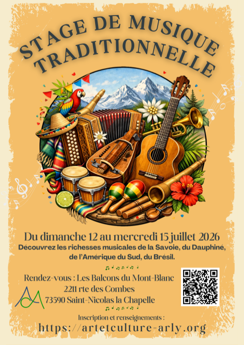 Ce stage aborde les musiques traditionnelles de Savoie, du Dauphiné et d’Amérique du Sud. Il est animé par des intervenants spécialisés reconnus dans leur savoir-faire.
