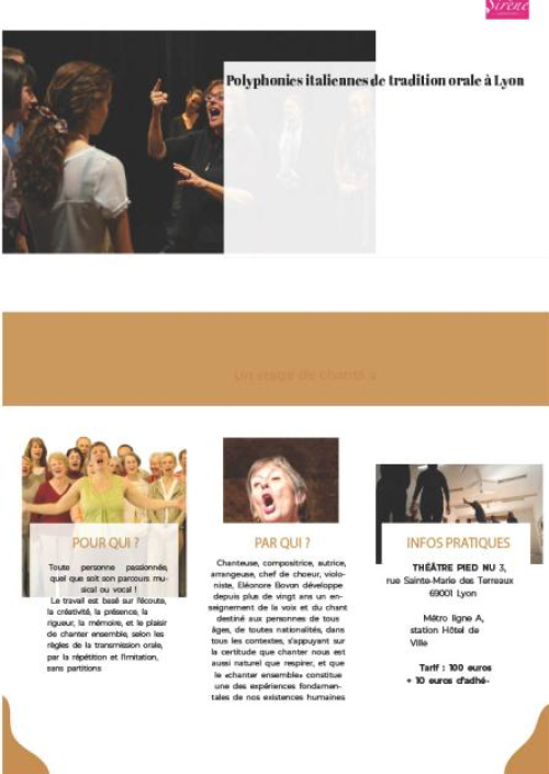 Venez savourer le plaisir unique du chant en polyphonie ! Les “Samedis Polyphonics” est une série d’ateliers de chant proposée par Agnès C...