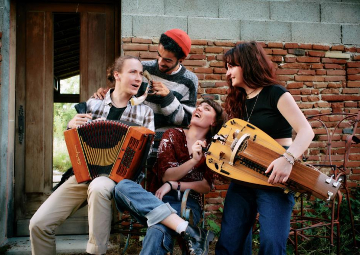 Cosmos chocolat, c’est un quartet de musique à danser qui vous propose un voyage gourmand et sucré dans l’univers des musiques traditionnelles. Au point de rencontre entre ces quatre jeunes artistes se trouve une amitié complice qui transparaît dans leur musique autant bourdonnante et épique que cadencée et chaleureuse. A travers leurs arrangements et leurs compositions originales, le quartet Cosmos chocolat parcourt les collectages de divers répertoires pour vous proposer un bal où vous n’êtes pas prêt.e.s de vous arrêter de danser.